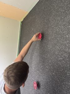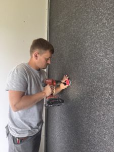 2.L’isolant PSE est positionné par glissement derrière les cornières et contre le mur. Si besoin de découper les panneaux à la bonne hauteur, nous préconisons l’utilisation d’une machine de découpe à fil chaud pour limiter les chutes de PSE.