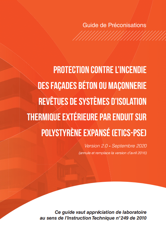La nouvelle version du Guide de Préconisations « Protection contre l’incendie des façades béton ou maçonnerie revêtues de systèmes d’isolation thermique extérieure par enduit sur polystyrène expansé (ETICS-PSE) » est désormais disponible en téléchargement sur le site.