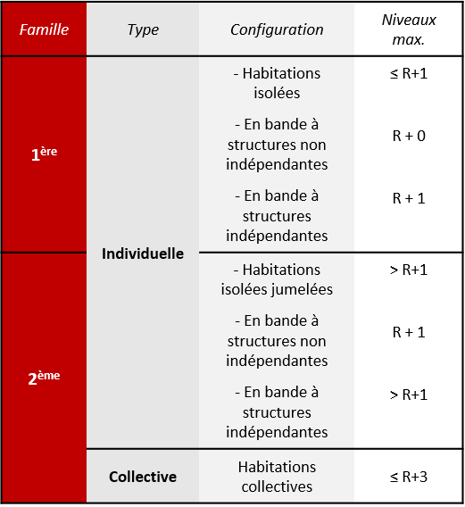 Classement des familles d’habitation selon l’arrêté du 31 janvier 1986 relatif à la protection contre l’incendie des bâtiments d’habitation.